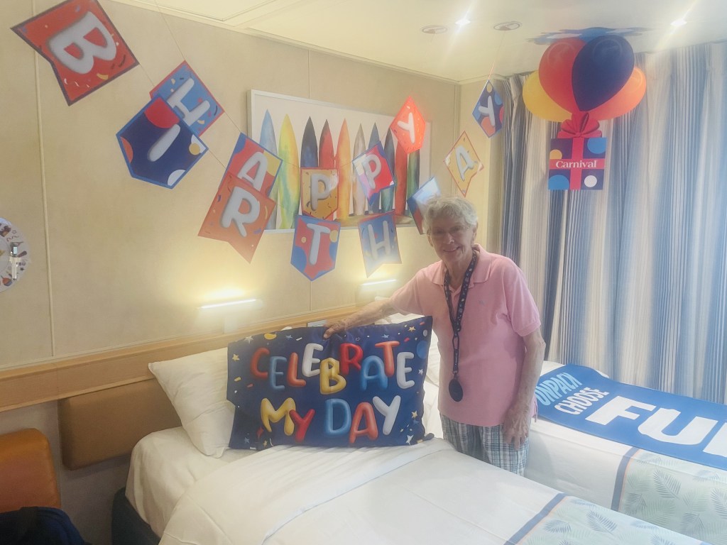 This trip was so special! I’m so glad we were able to take my grandmother on a cruise for her 90th birthday. We all had a blast. We upgraded both our rooms to a balcony. I had been on cruises in the past, but never experienced a balcony room. I really enjoyed having that little bit of extra space to sit and enjoy the ocean while sipping on some coffee. Also, carnival cruises can be a bit noisy and so much going on. So having the balcony was a nice little get-a-way from all that when you didn’t feel like the commotion.